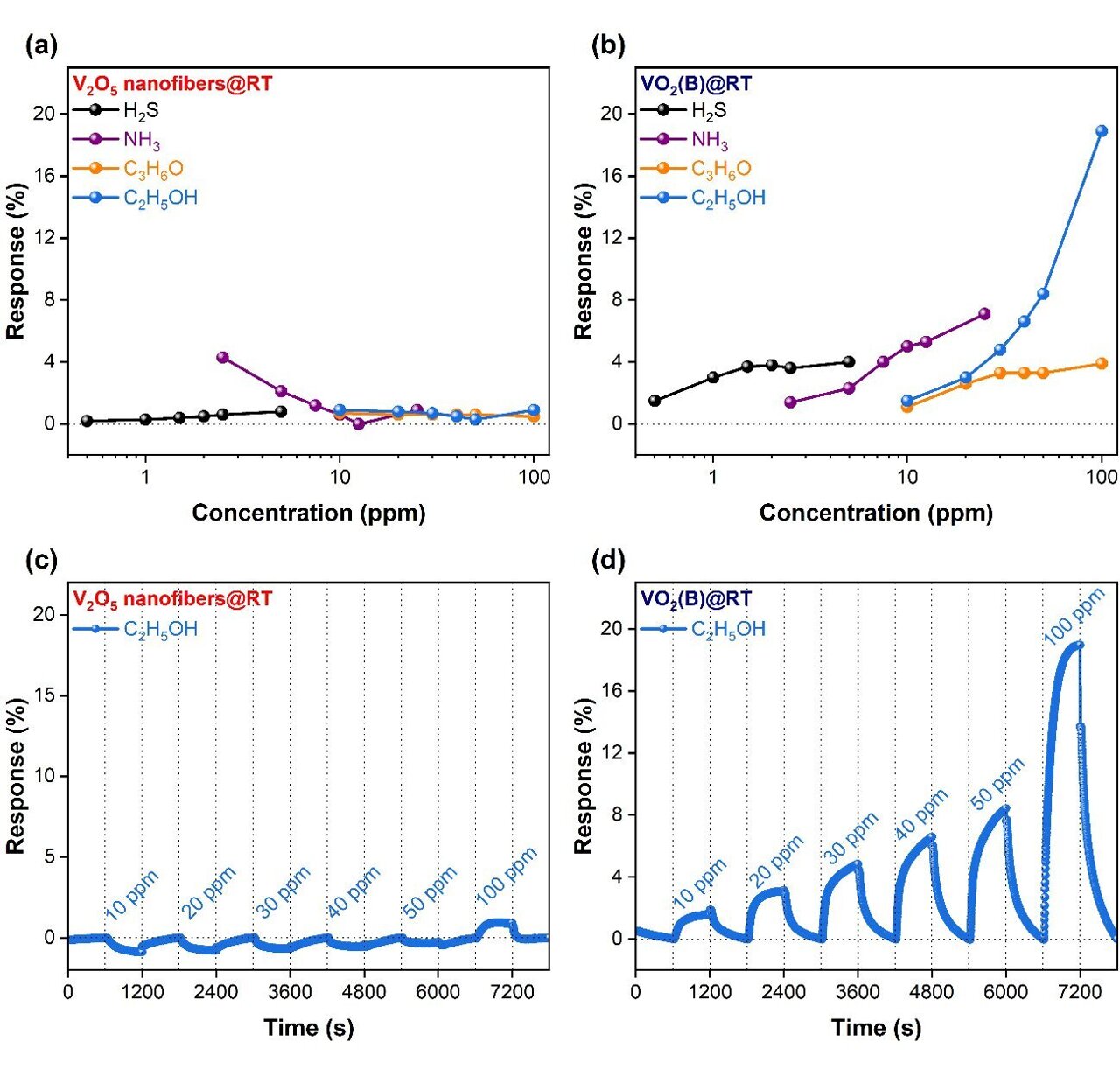 “Compared with the original material, the synthesized VO2(B) crystals exhibited approximately 19 times higher sensitivity to ethanol at room temperature. In addition, their selectivity toward ethanol over other gases was significantly improved,” said Yin.