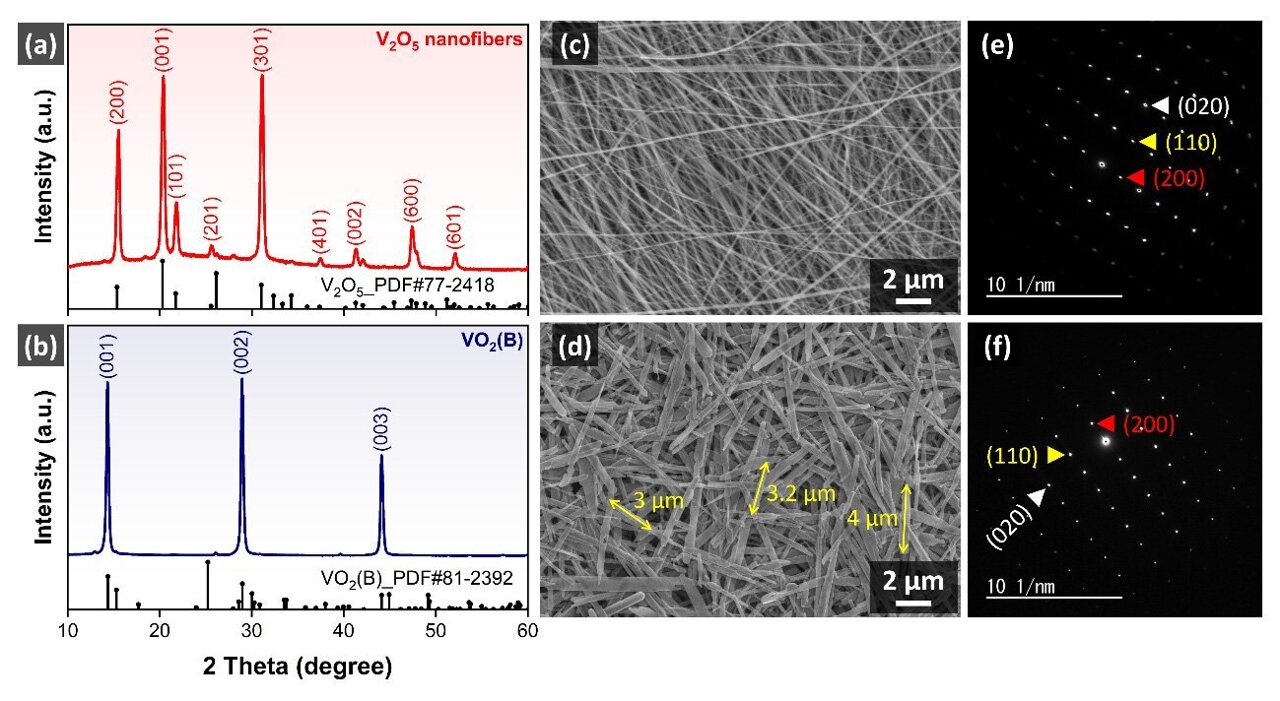An international research team has successfully synthesized oriented belt-shaped vanadium dioxide (VO2(B)) single crystals via a hydrothermal reduction method, using one-dimensional vanadium pentoxide (V2O5) nanofibers as the starting material. This work, published in the journal ACS Sensors, provides a new material platform and design guidelines for the development of next-generation low-power gas sensors capable of operating at room temperature.