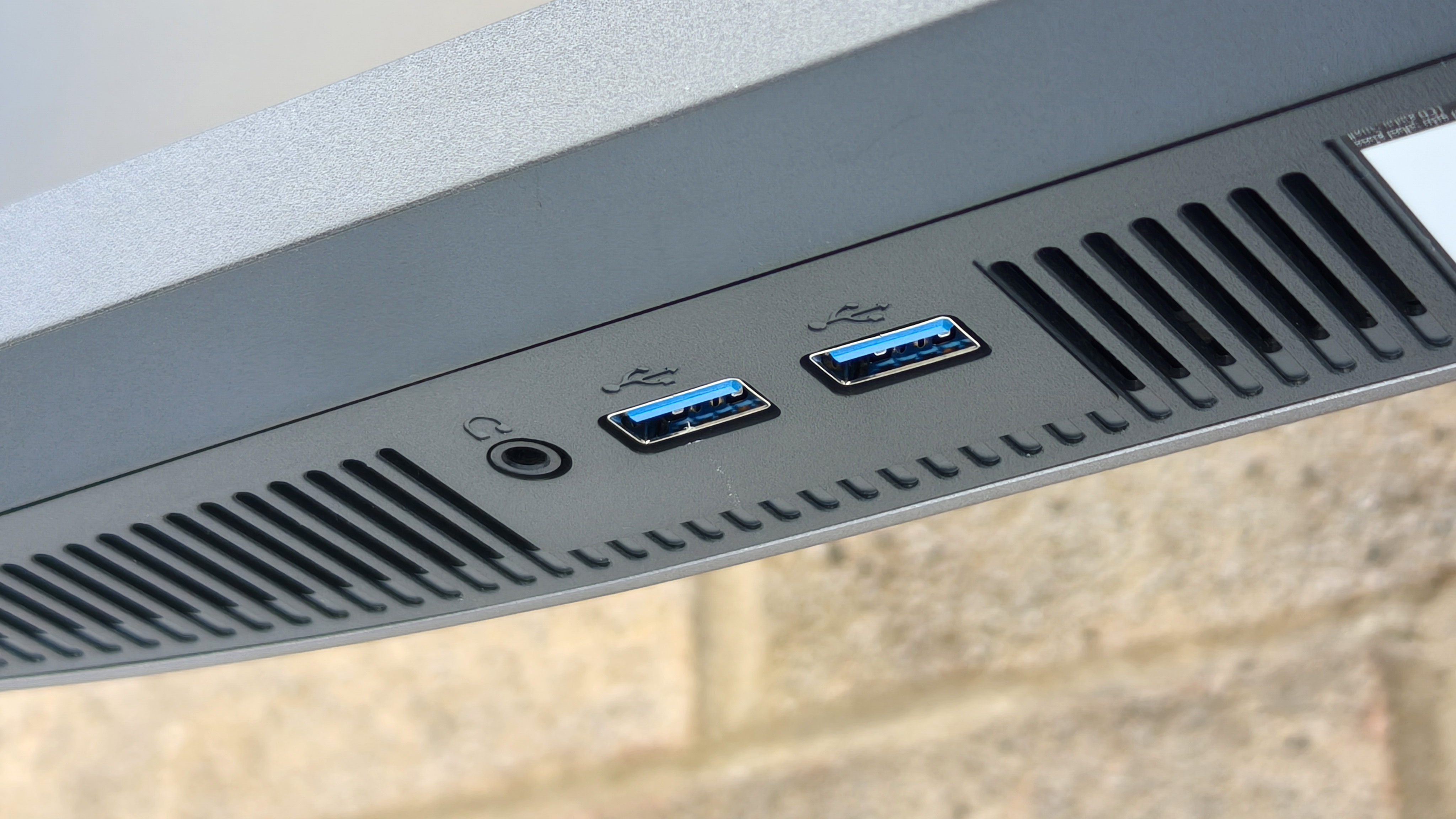 Directly below this, at the base of the screen, is a row of buttons and BenQ’s classic joystick controller for navigating the various on-screen menus and monitor settings. This system works well, and feels more intuitive than a button-only interface, though don’t forget you can also use the included Hotkey Puck remote dial for an even more ergonomic control system. Also on the bottom of the display are a pair of USB-A sockets, and a 3.5mm headphone socket.