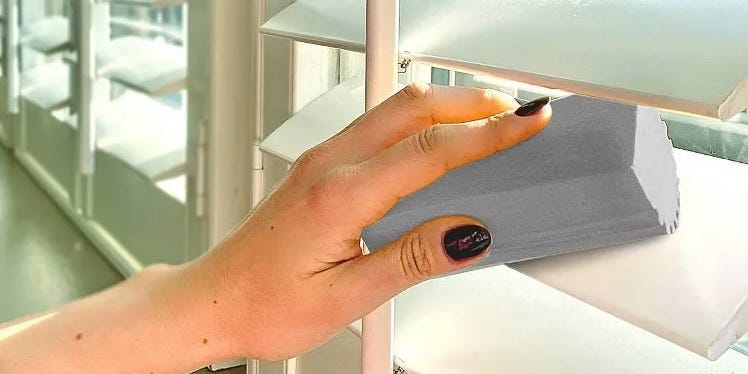 The Damp Duster has the consistency of a stress ball, and arrives pre-moistened in a plastic wrapper. Use it to catch dust, the team suggests, then rinse clean under running water. Simply dampen with water before each dusting shift, and you can reuse it “time and time again,” they say.