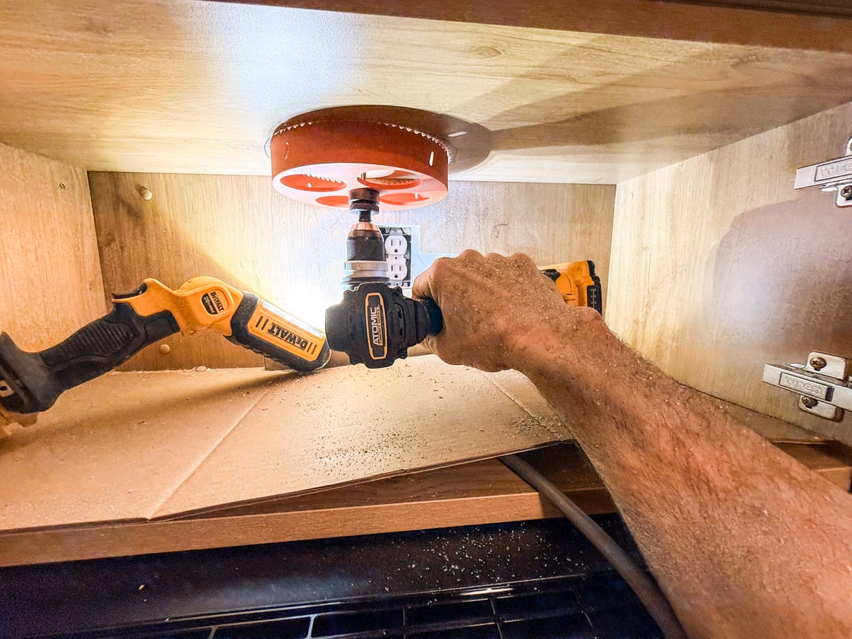 “How do I drill a 7 ¼-inch hole in the ceiling of a cabinet that’s only 15 inches tall?”